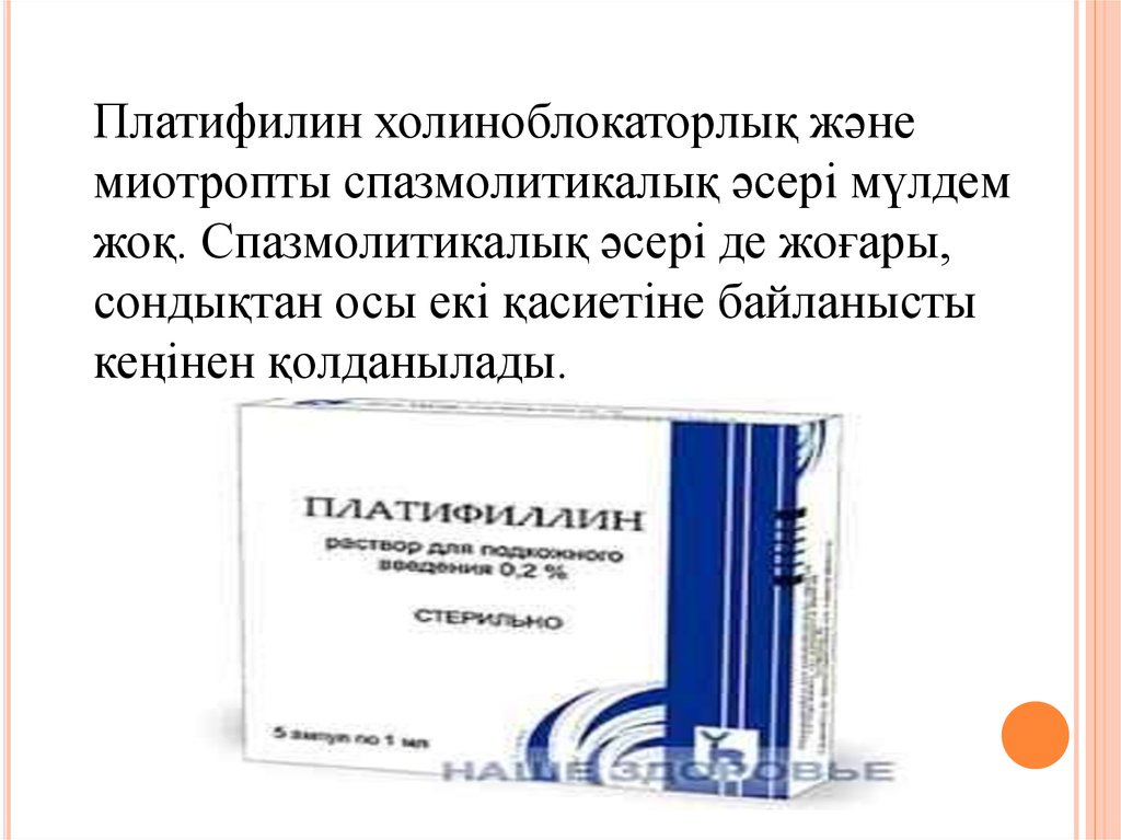 Платифилин холиноблокаторлық жәнемиотропты спазмолитикалық әсері мүлдем
