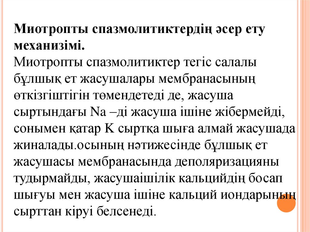 Миотропты спазмолитиктердің әсер етумеханизімі.