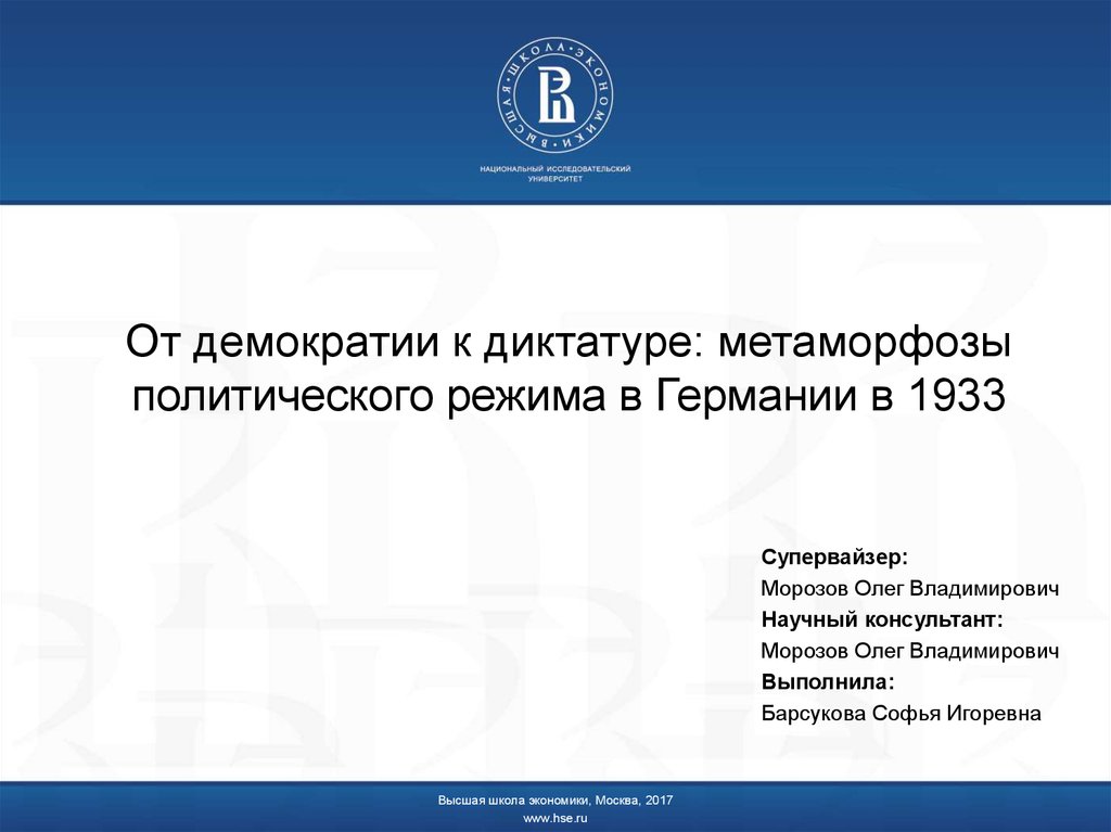 1. От демократии к диктатуре: метаморфозы политического режима в Германии в 1933