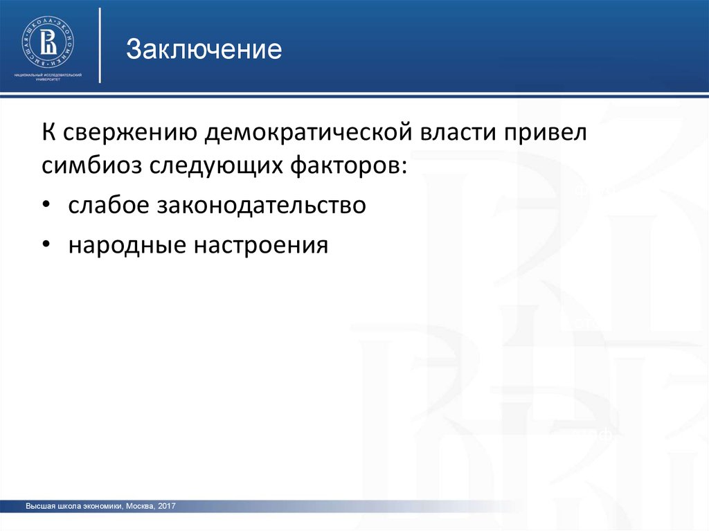 ЗаключениеК свержению демократической власти привел