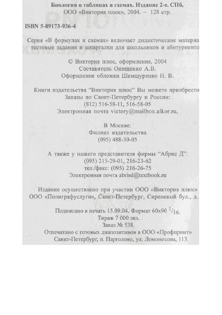 Биология в схемах и таблицах