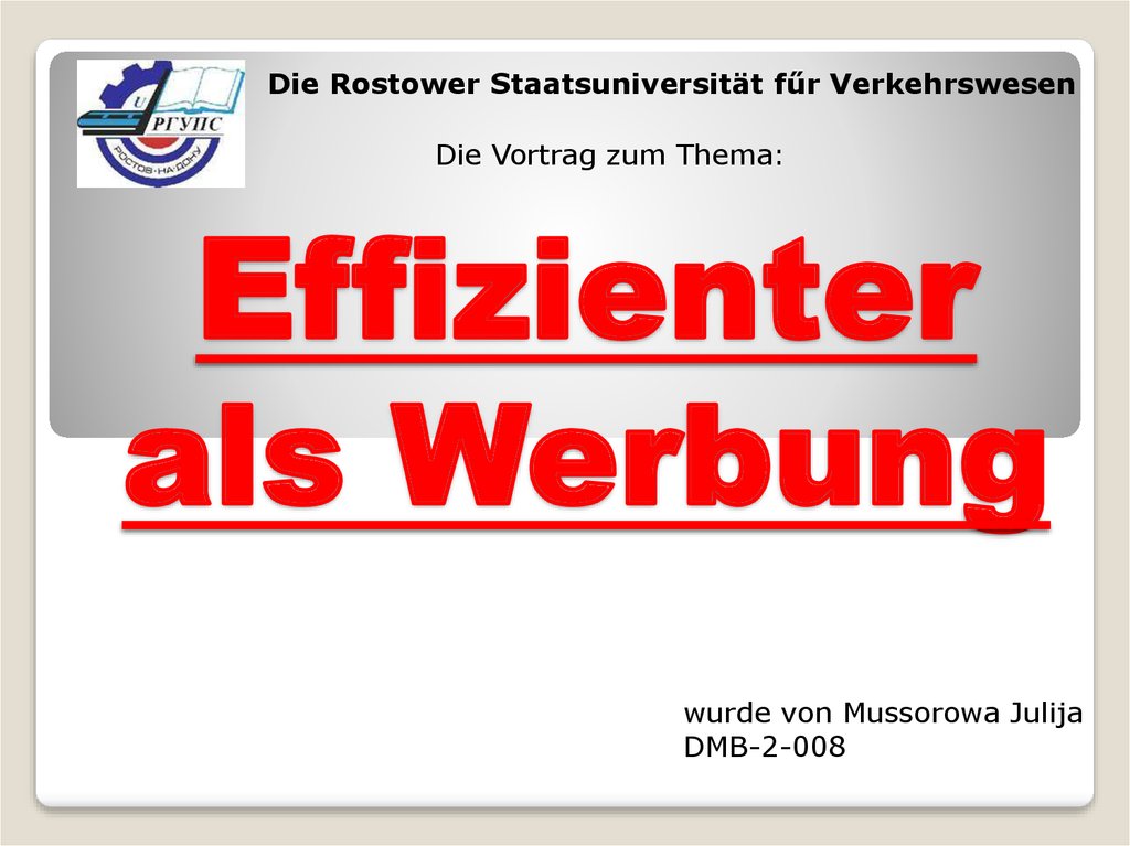 Die Rostower Staatsuniversität fűr VerkehrswesenDie Vortrag zum Thema: