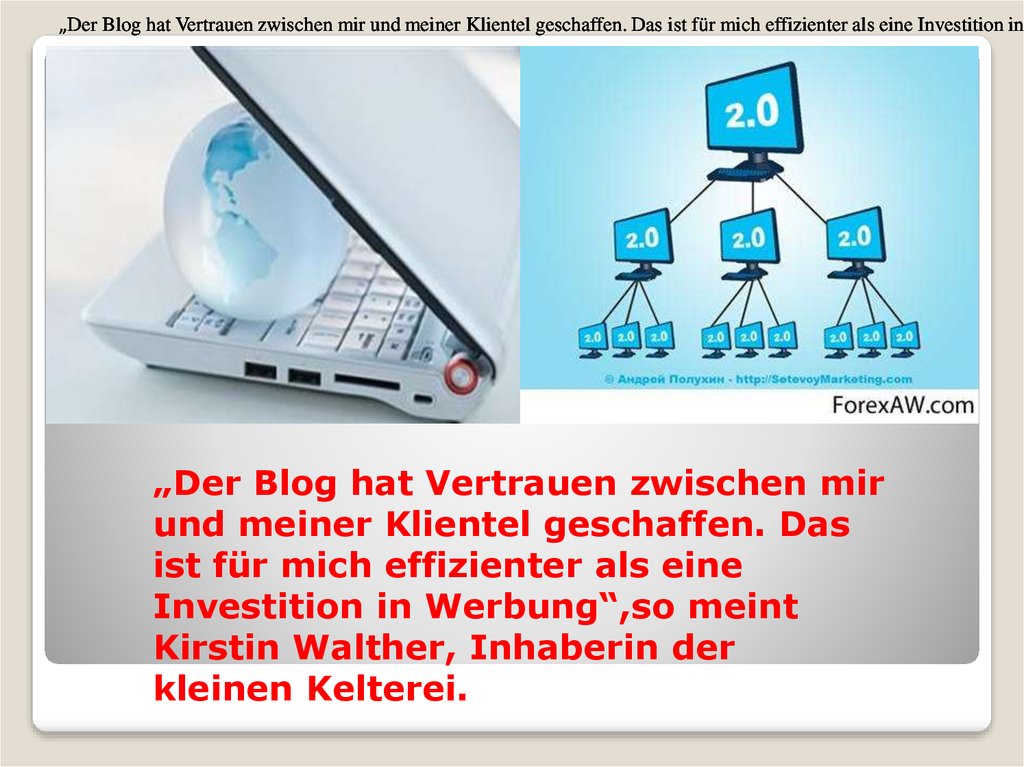 „Der Blog hat Vertrauen zwischen mir und meiner Klientel geschaffen. Das ist für mich effizienter als eine Investition in„Der Blog hat Vertrauen zwischen mir
