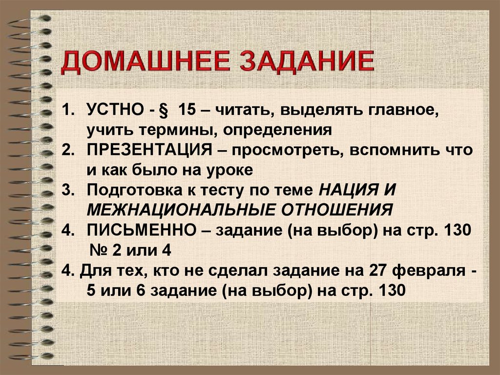 4. Для тех, кто не сделал задание на 27 февраля 5 или 6 задание (на выбор) на стр. 130