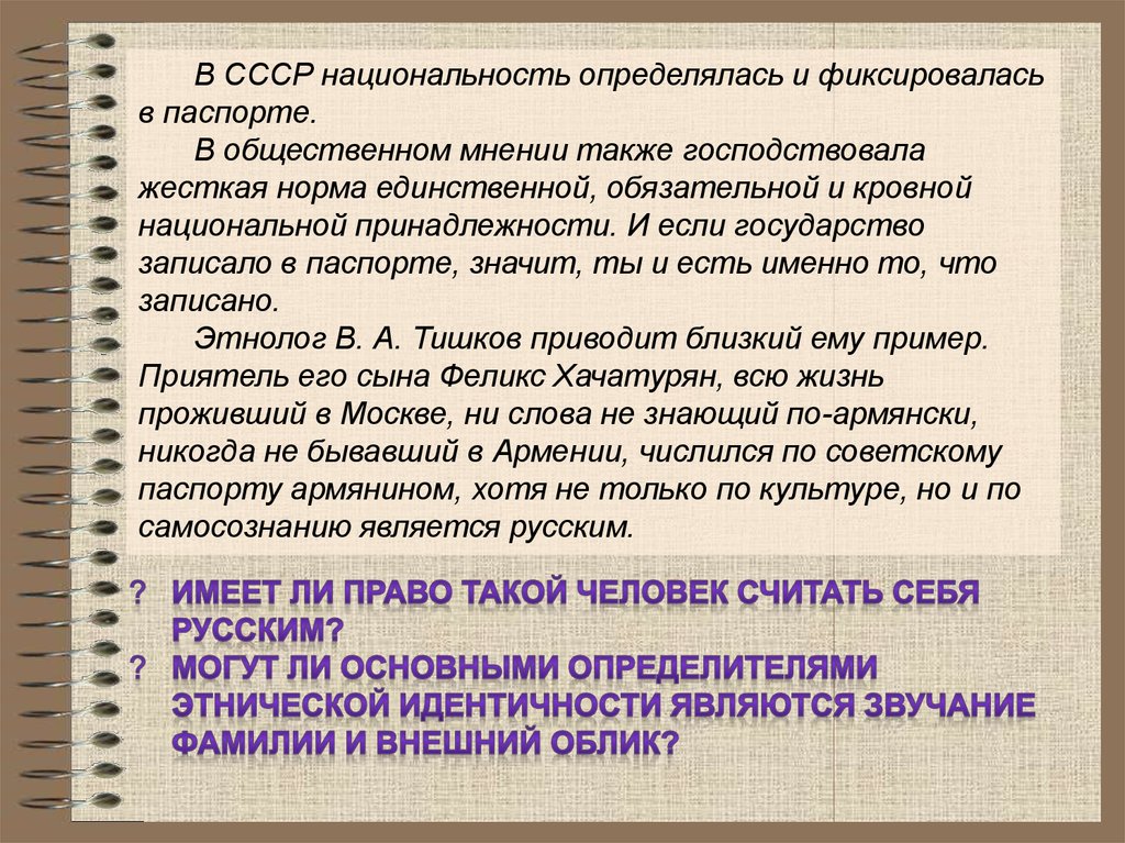 В СССР национальность определялась и фиксироваласьв паспорте.