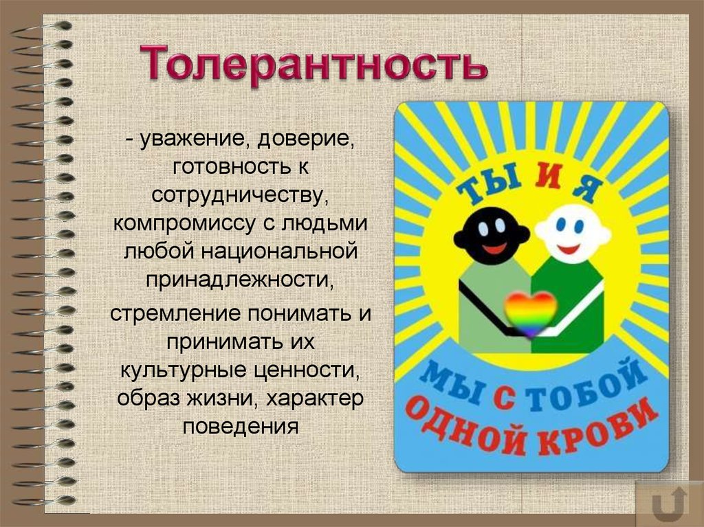 признание и уважение многообразия культур,приверженность идеям мира, неприятие насилия в