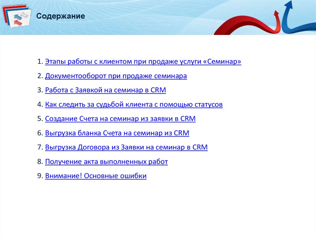Содержание1. Этапы работы с клиентом при продаже услуги «Семинар»
