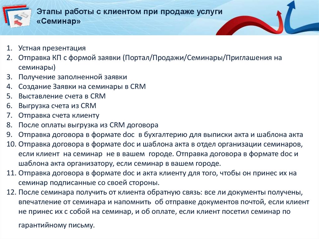 Этапы работы с клиентом при продаже услуги«Семинар»