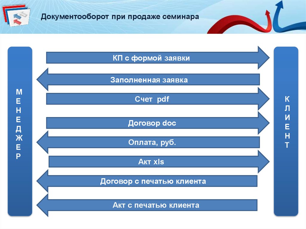 если клиент на семинар не в вашем городе. Отправка договора в формате doc и