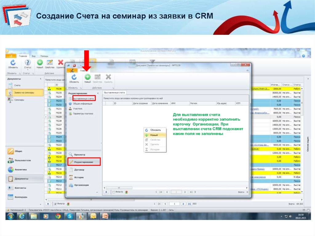 Работа с Заявкой на семинар в CRMЗаполняется согласно заявки