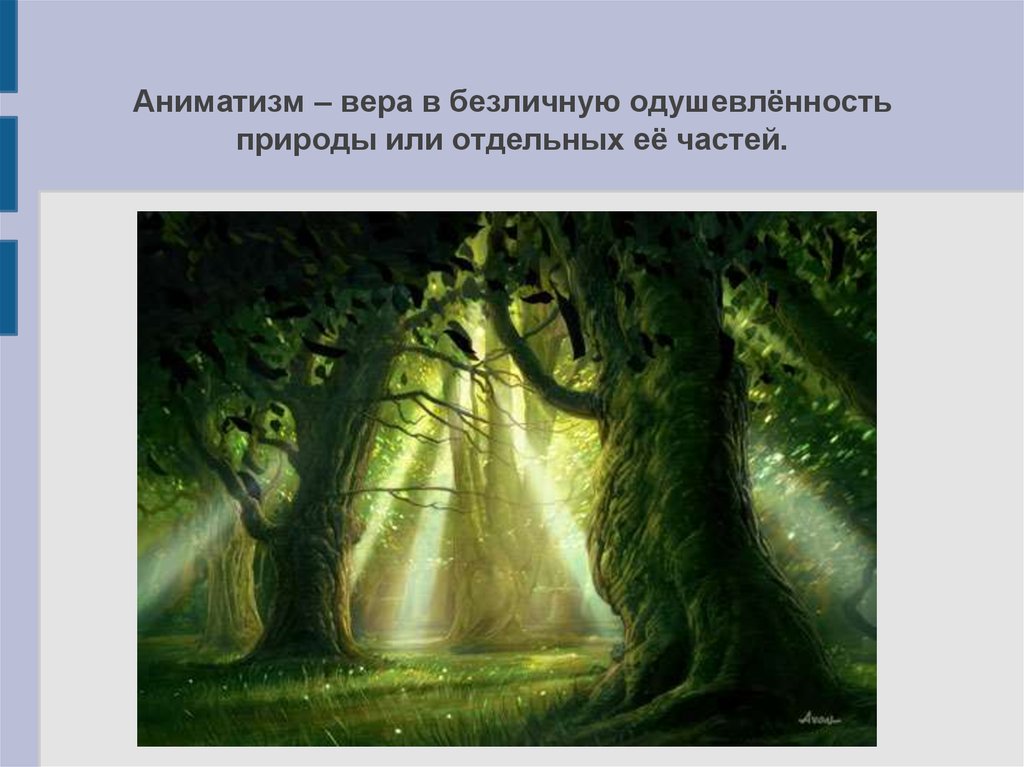 Аниматизм – вера в безличную одушевлённостьприроды или отдельных её частей.