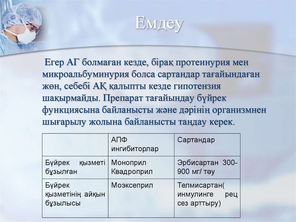науқастарға препарат таңдау. АПФ