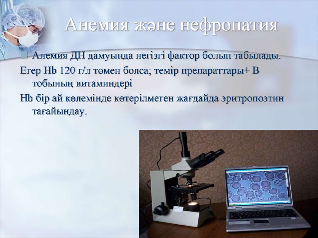 Анемия және нефропатияАнемия ДН дамуында негізгі фактор болып табылады.
