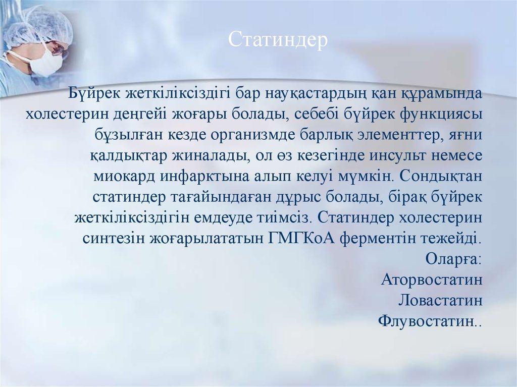 блокаторлары, статиндер,альдостерон