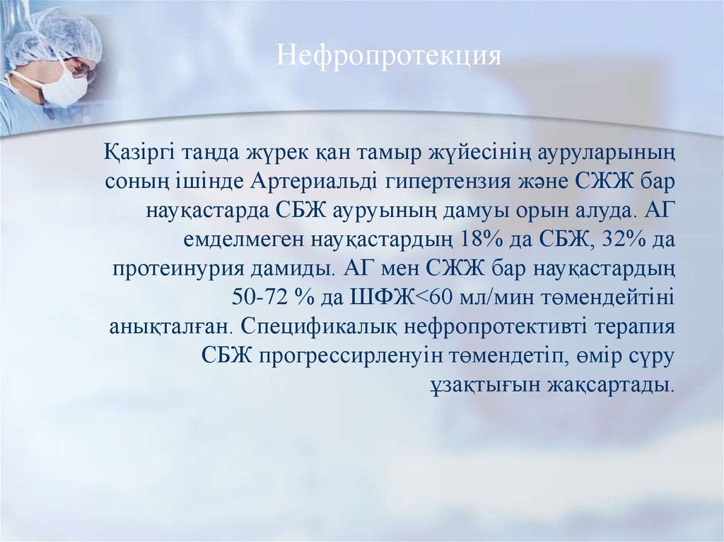 НефропротекцияҚазіргі таңда жүрек қан тамыр жүйесінің ауруларының