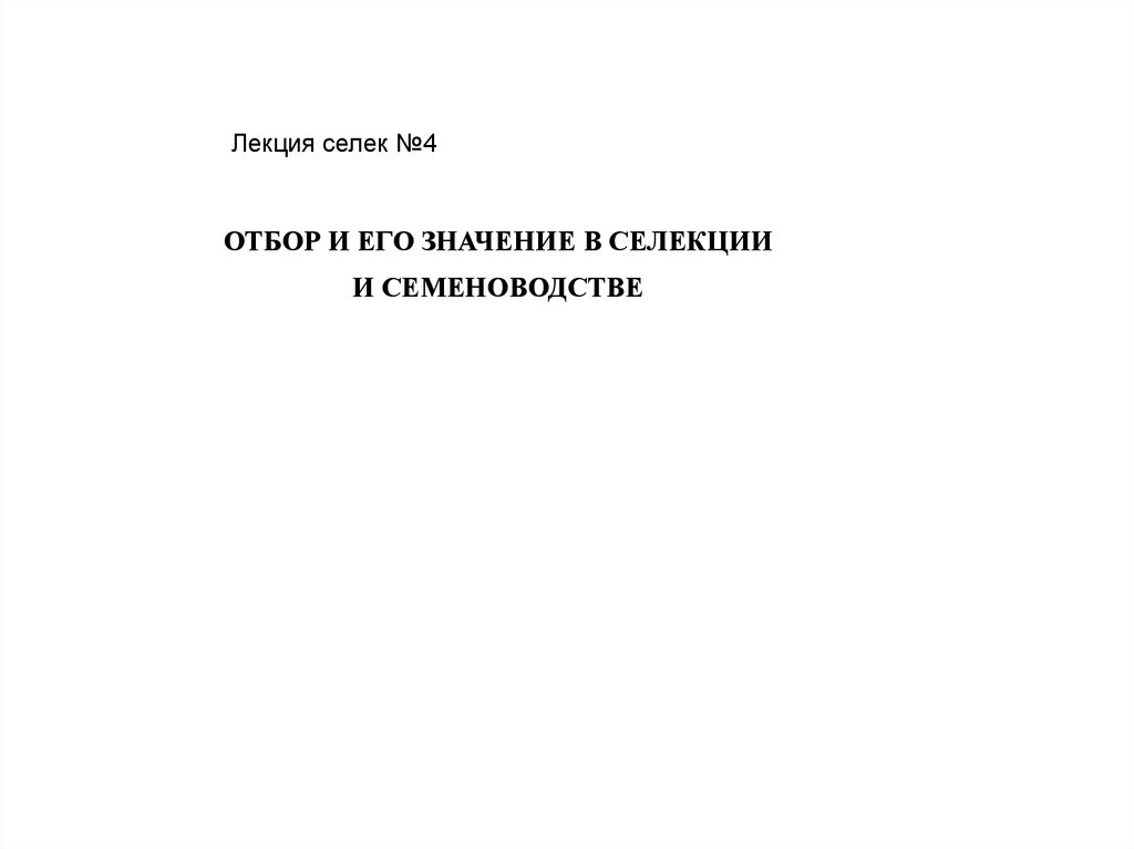 ОТБОР И ЕГО ЗНАЧЕНИЕ В СЕЛЕКЦИИИ СЕМЕНОВОДСТВЕ