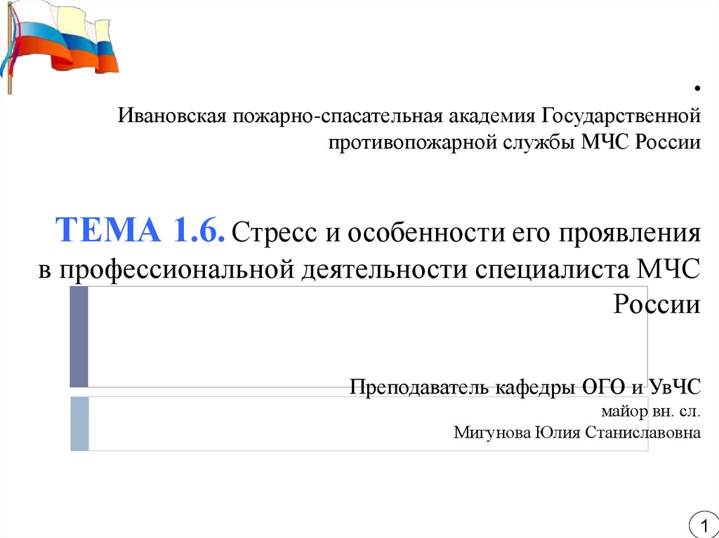 1. Ивановская пожарно-спасательная академия Государственной противопожарной службы МЧС России ТЕМА 1.6. Стресс и особенности его проявления