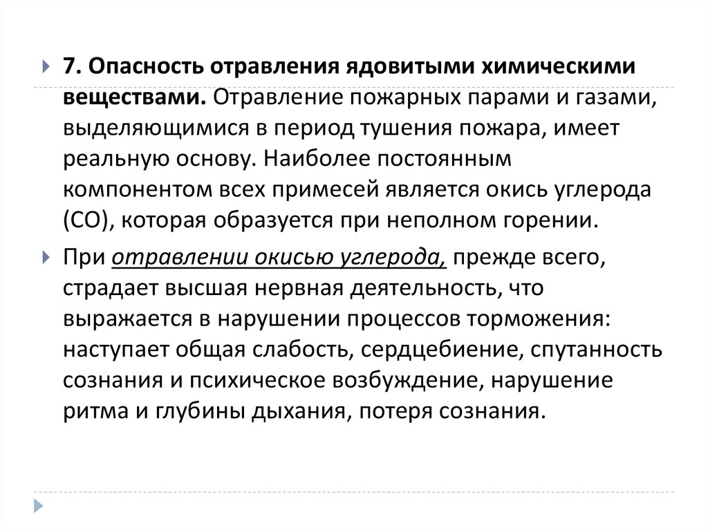 7. Опасность отравления ядовитыми химическимивеществами. Отравление пожарных парами и газами,
