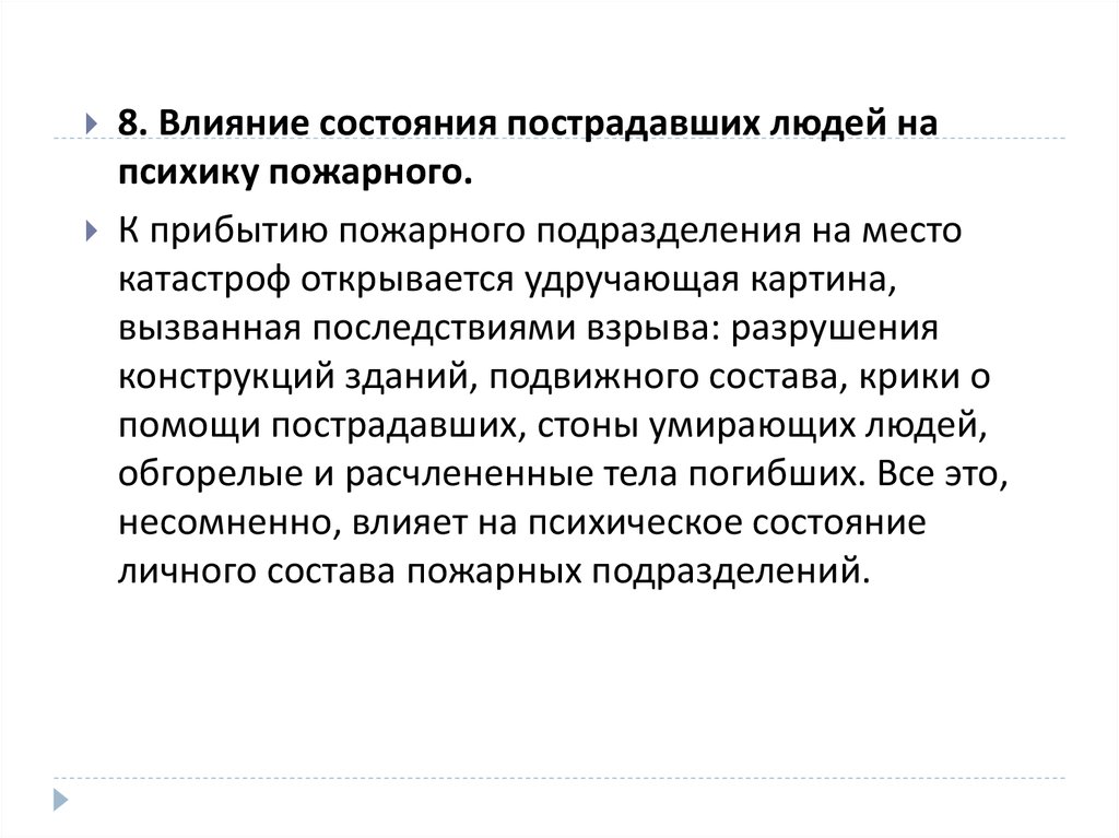 8. Влияние состояния пострадавших людей напсихику пожарного.