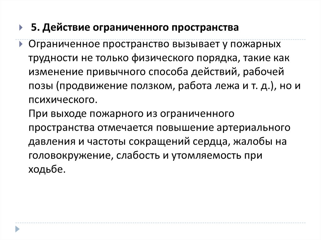 5. Действие ограниченного пространстваОграниченное пространство вызывает у пожарных