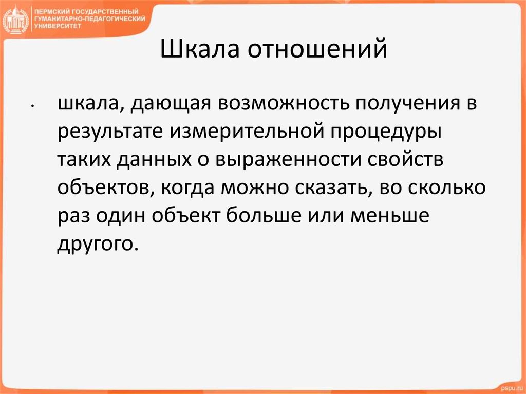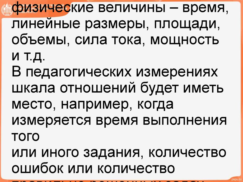 Признаки шкалы отношений:положение абсолютной нулевой точки известно;