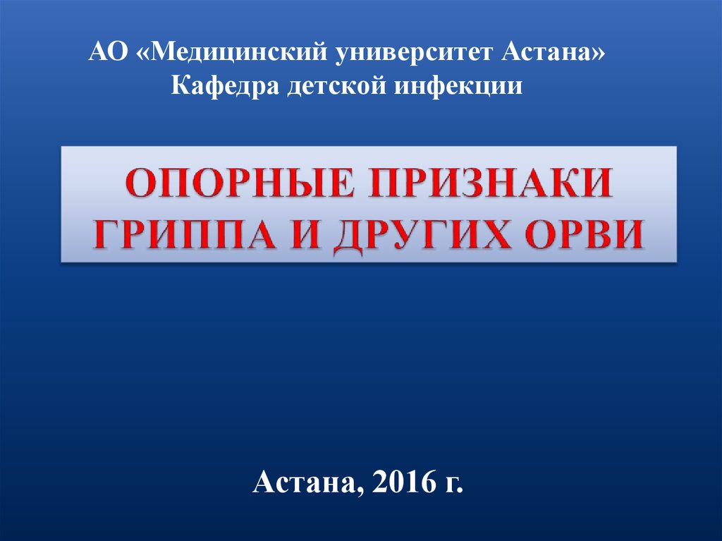 АО «Медицинский университет Астана»Кафедра детской инфекции