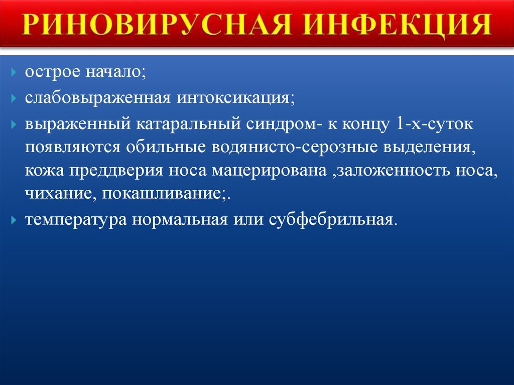 острое начало с последовательным развитием симптомовзаболевания(повышается температура и появляются