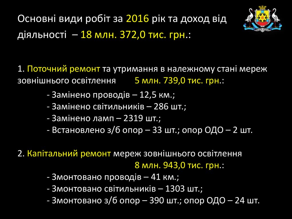 - Замінено ламп – 2319 шт.;
