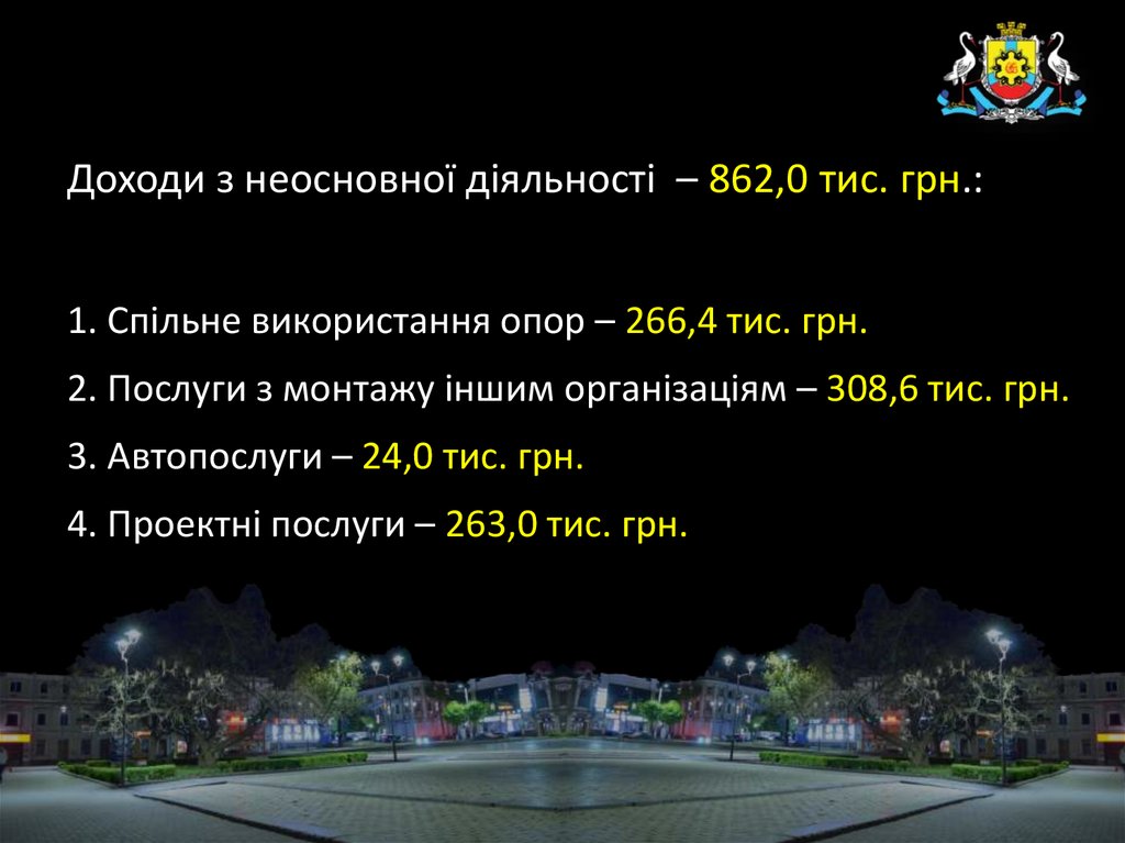 Доходи з неосновної діяльності – 862,0 тис. грн.:1. Спільне використання опор – 266,4 тис. грн.