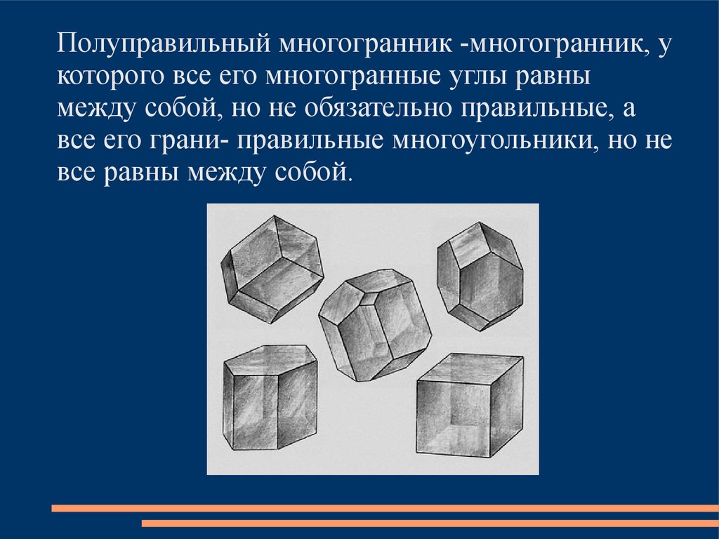 Полуправильный многогранник -многогранник, укоторого все его многогранные углы равны