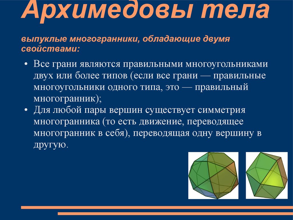 Архимедовы телавыпуклые многогранники, обладающие двумя