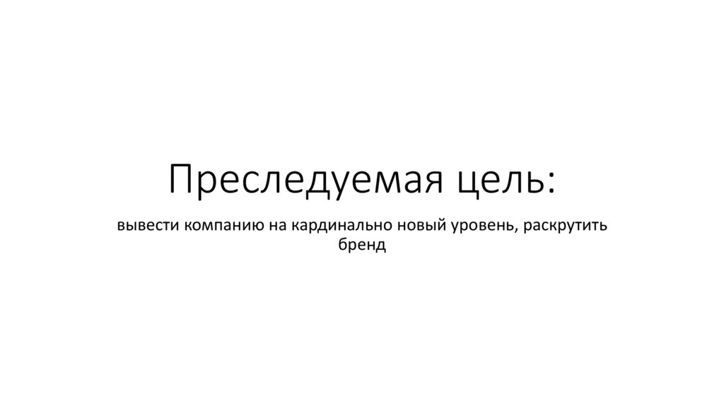 Преследуемая цель:вывести компанию на кардинально новый уровень, раскрутить