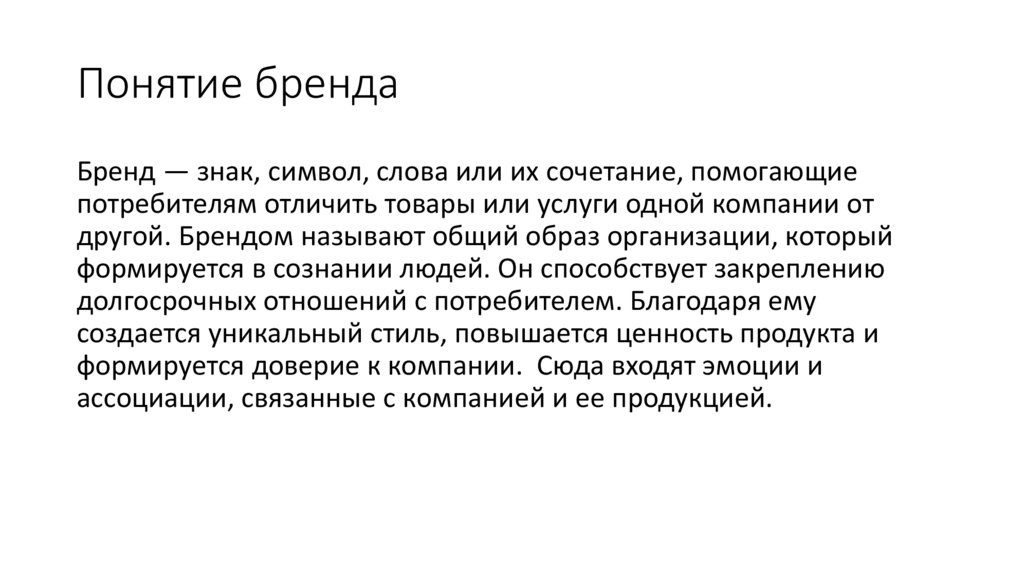 Понятие брендаБренд — знак, символ, слова или их сочетание, помогающие