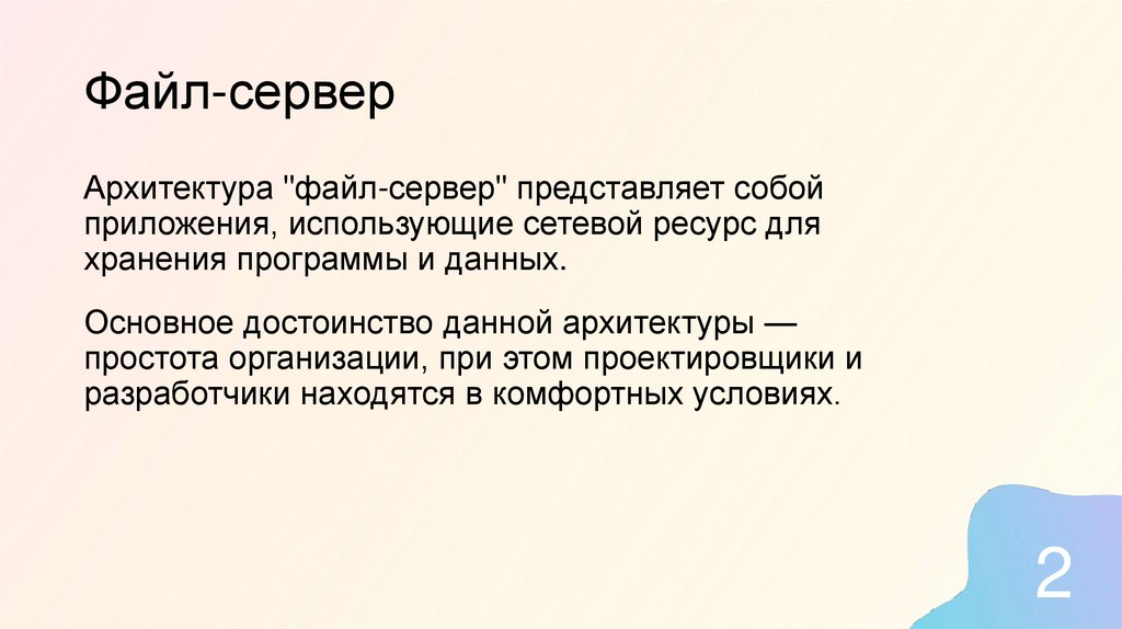 Файл-серверАрхитектура "файл-сервер" представляет собой