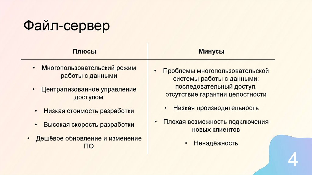 Файл-серверПлюсы