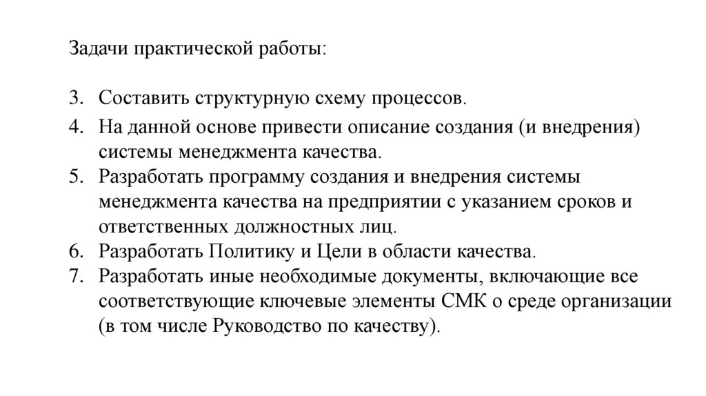Задачи практической работы:8. Определить перечень процессов, процедур, записей о качестве,