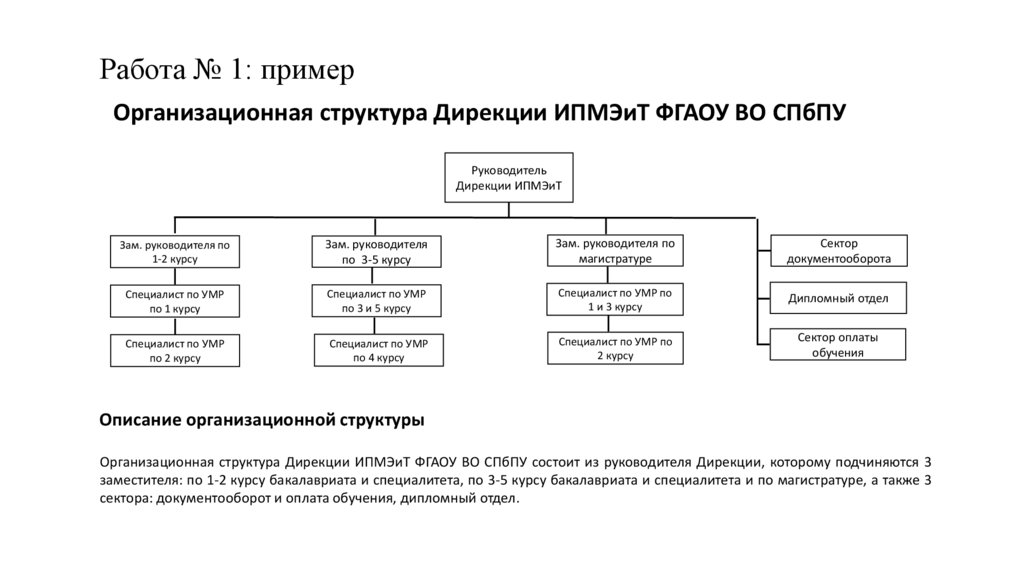 Работа № 1: примерОрганизационная структура Дирекции ИПМЭиТ ФГАОУ ВО СПбПУ