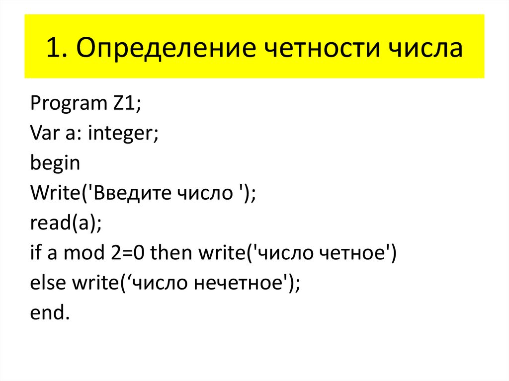 1. Определение четности числаProgram Z1;