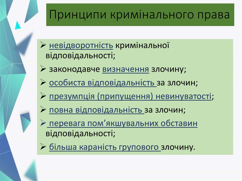 Принципи кримінального праваневідворотність кримінальної