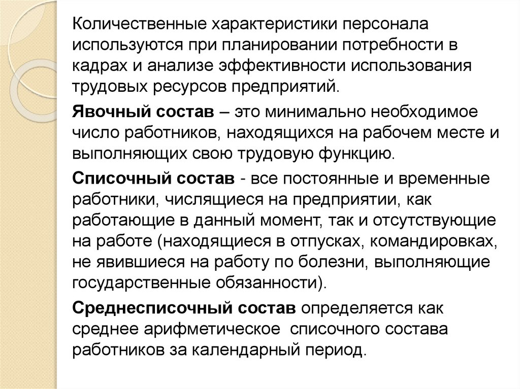 Количественные характеристики персоналаиспользуются при планировании потребности в