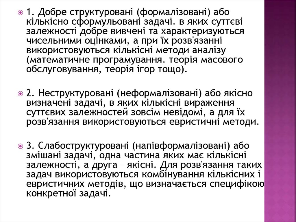 1. Добре структуровані (формалізовані) абокількісно сформульовані задачі. в яких суттєві
