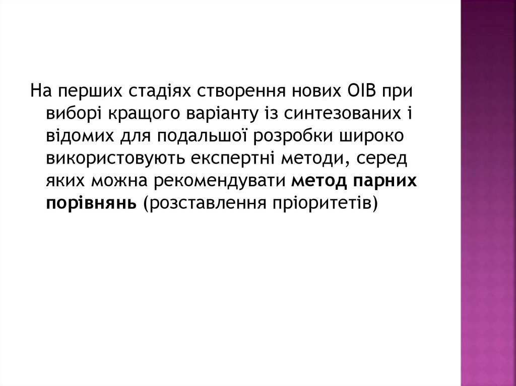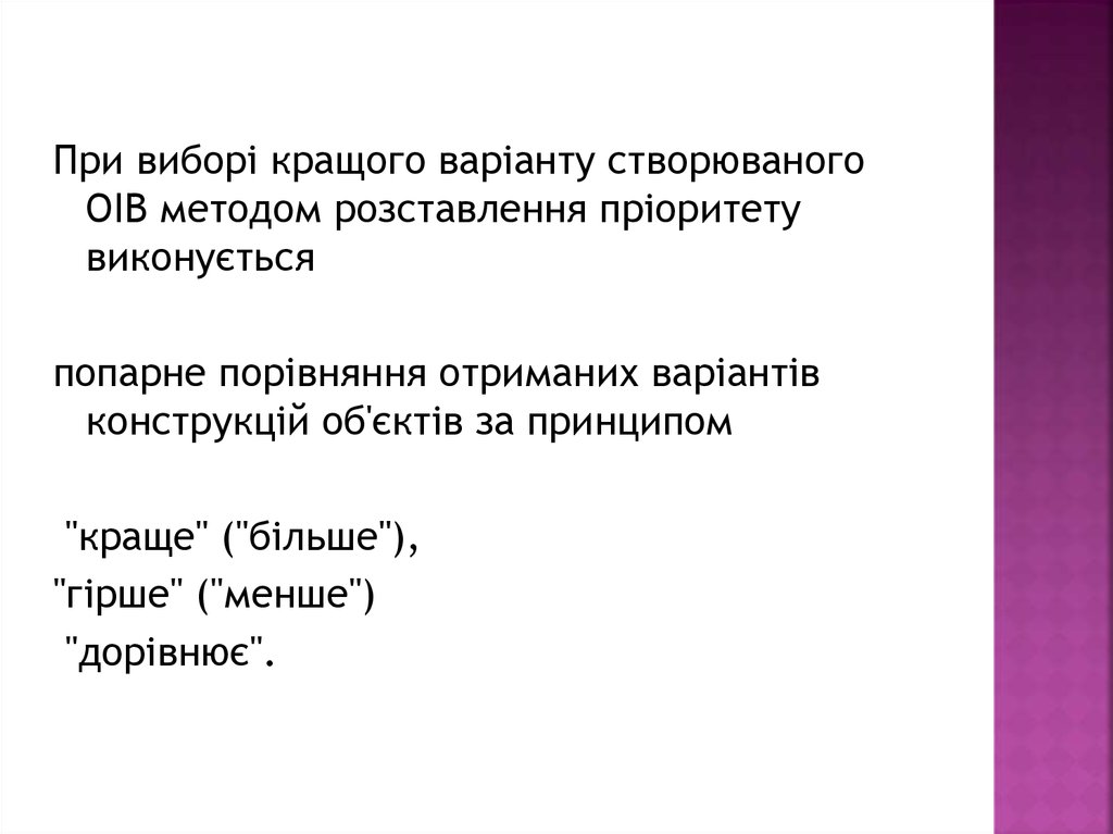 При виборі кращого варіанту створюваногоОІВ методом розставлення пріоритету