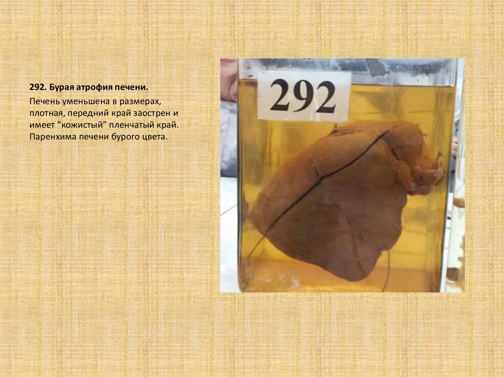 292. Бурая атрофия печени.Печень уменьшена в размерах,