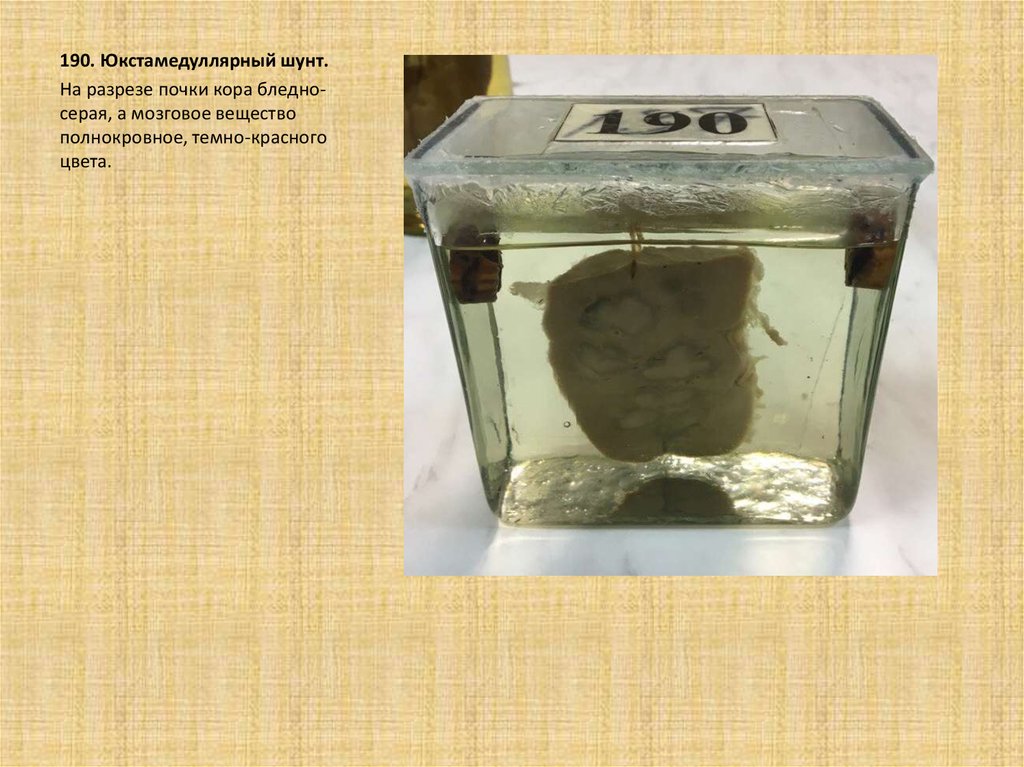 190. Юкстамедуллярный шунт.На разрезе почки кора бледносерая, а мозговое вещество