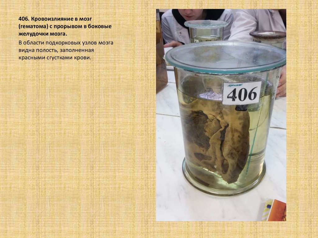 406. Кровоизлияние в мозг(гематома) с прорывом в боковые