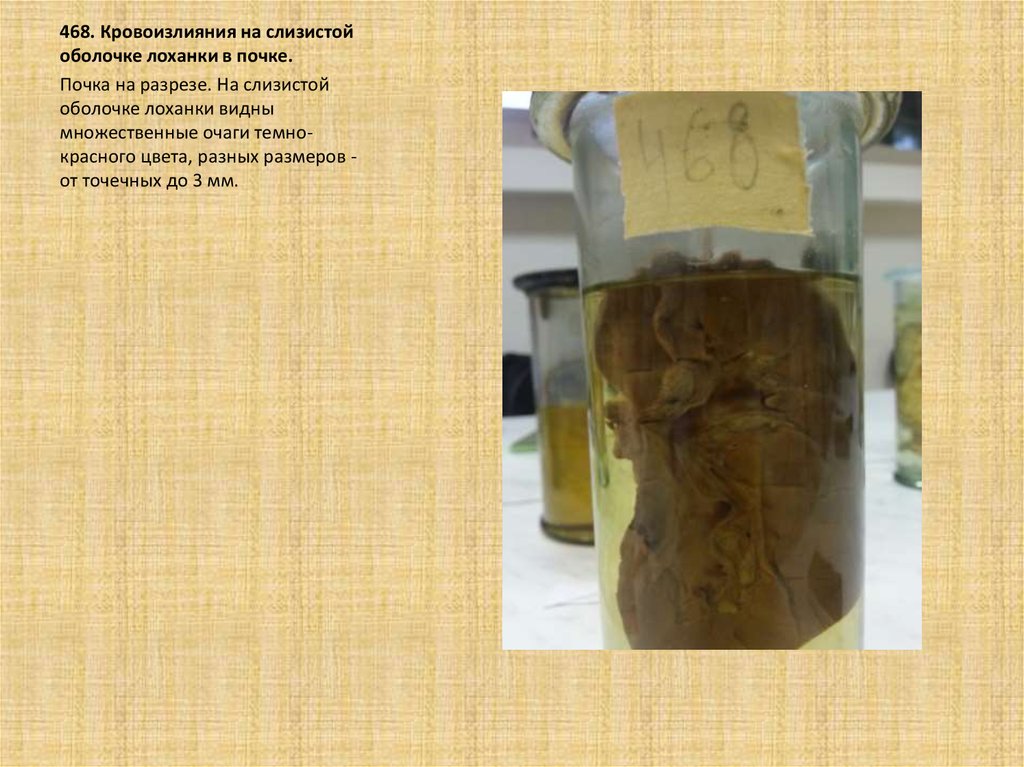468. Кровоизлияния на слизистойоболочке лоханки в почке.