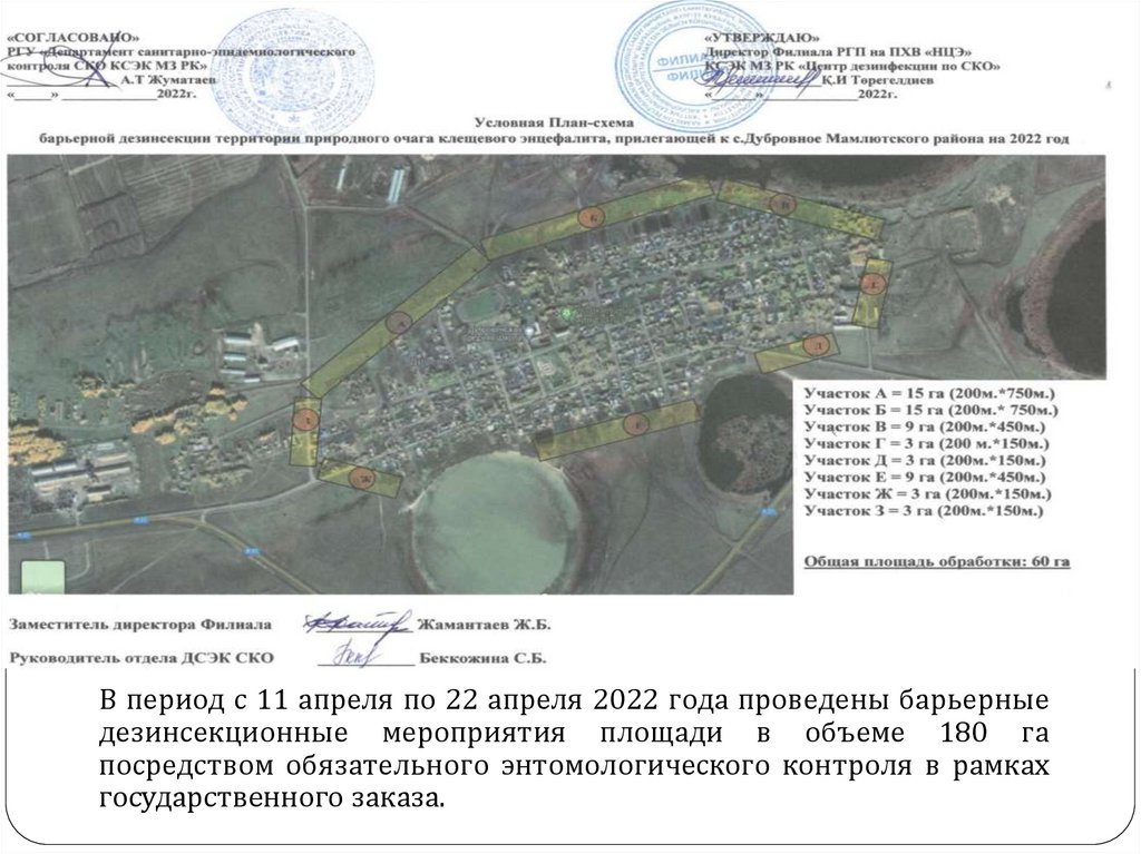 В период с 11 апреля по 22 апреля 2022 года проведены барьерныедезинсекционные мероприятия площади в объеме 180 га