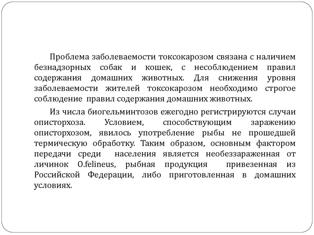 Проблема заболеваемости токсокарозом связана с наличиембезнадзорных собак и кошек, с несоблюдением правил
