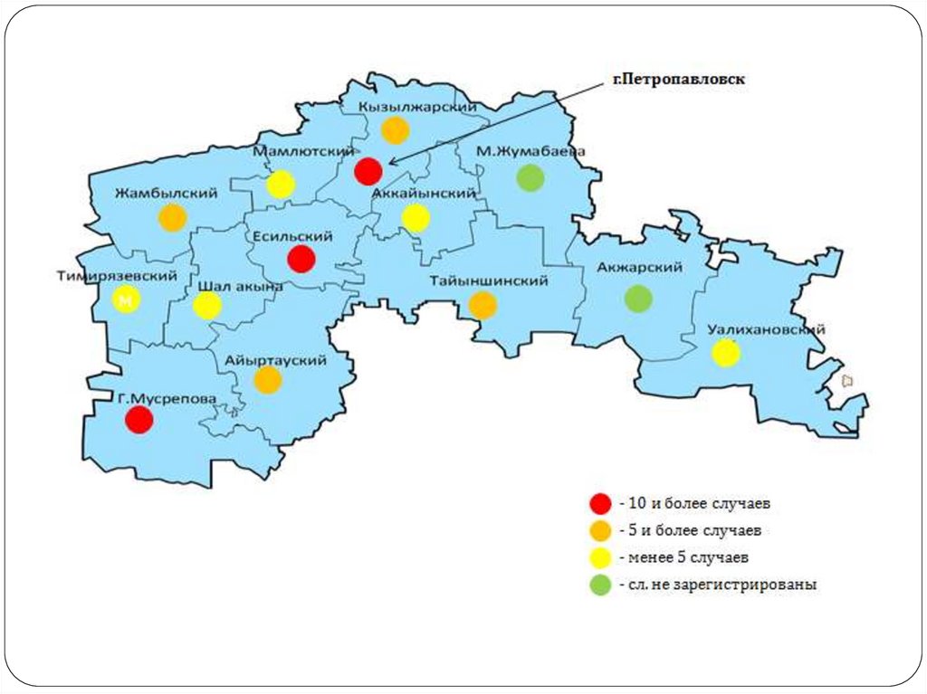 г.Петропавловске (0,45) и в Айыртауском районе (2,80).