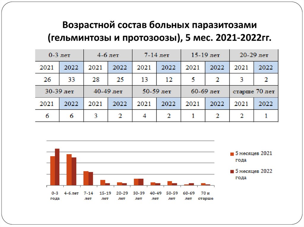 Эпидемиологическая ситуация попаразитарным заболеваниям за 2021-2022гг.